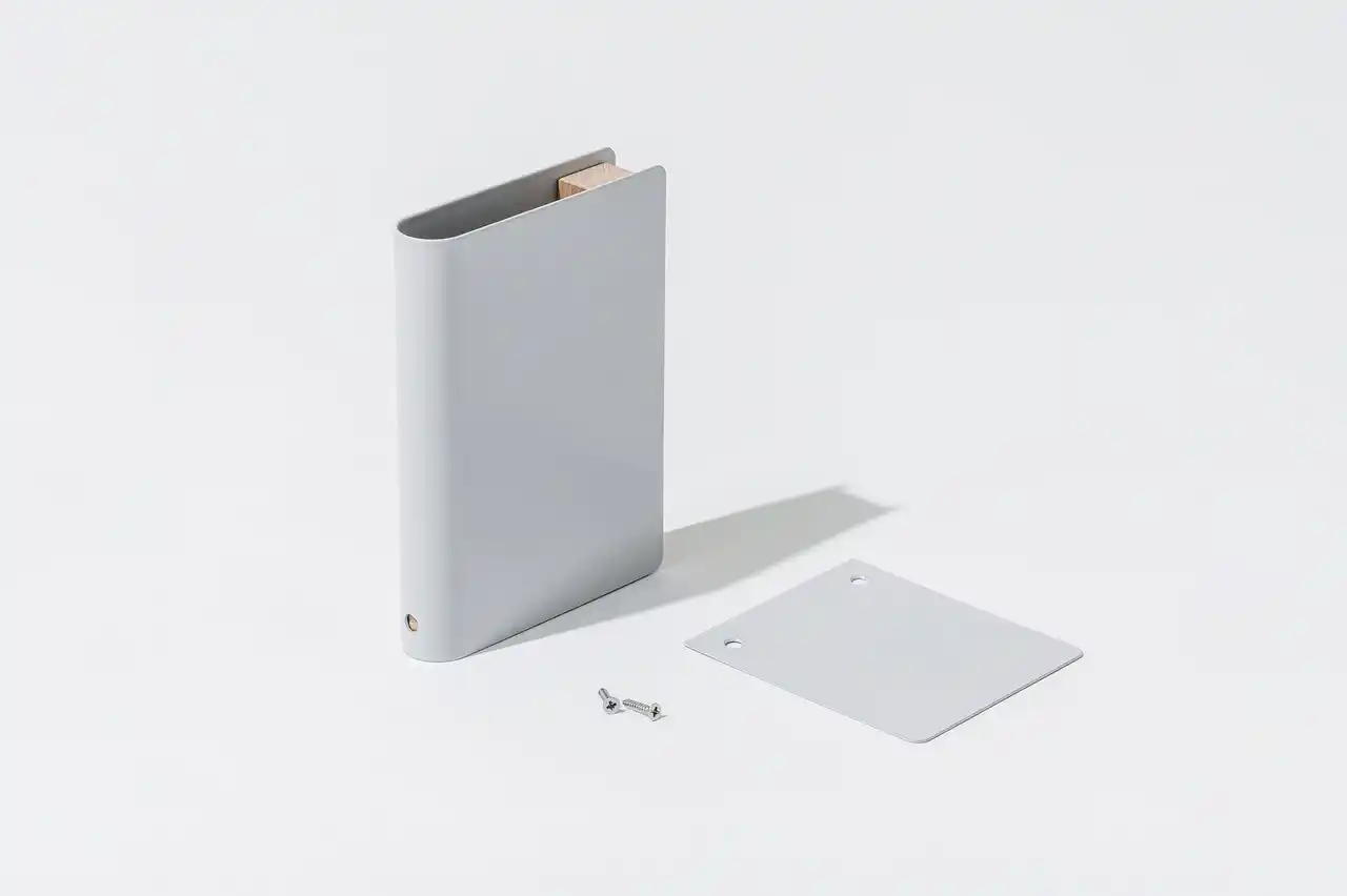 ◼️材質:スチール(粉体塗装)・木材(無垢) ◼️寸法:W25 mm・D105 mm・H148 mm ◼️組立後の寸法:W100 mm・D105 mm・H149 mm ◼️付属品:ベースプレート・ネジ2本 |