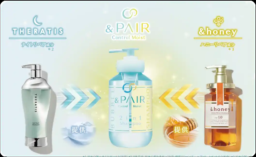 高機能ナイトケアの『THERATIS(セラティス)』とハチミツ美容の『&honey(アンドハニー)』から成分を提供。ナイトケアとハチミツ*1の力で、うるおいのあるしっとり髪へ導きます。 |