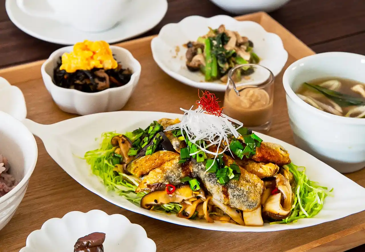 えらべるメインのおかずと、副菜やごはん、みそ汁などがセットになった人気のランチメニューも、秋メニューにリニューアル。メインのおかずには、人気の「揚げ鶏のねぎソース」に加え、西京みそに漬け込んだ鶏肉をジューシーに焼き上げた「鶏肉の西京みそ焼き」、ふんわり揚げた白身魚と秋野菜を、大根おろしと和風あんでさっぱりと仕上げた「白身魚と秋野菜のおろしあん」が登場します。 |