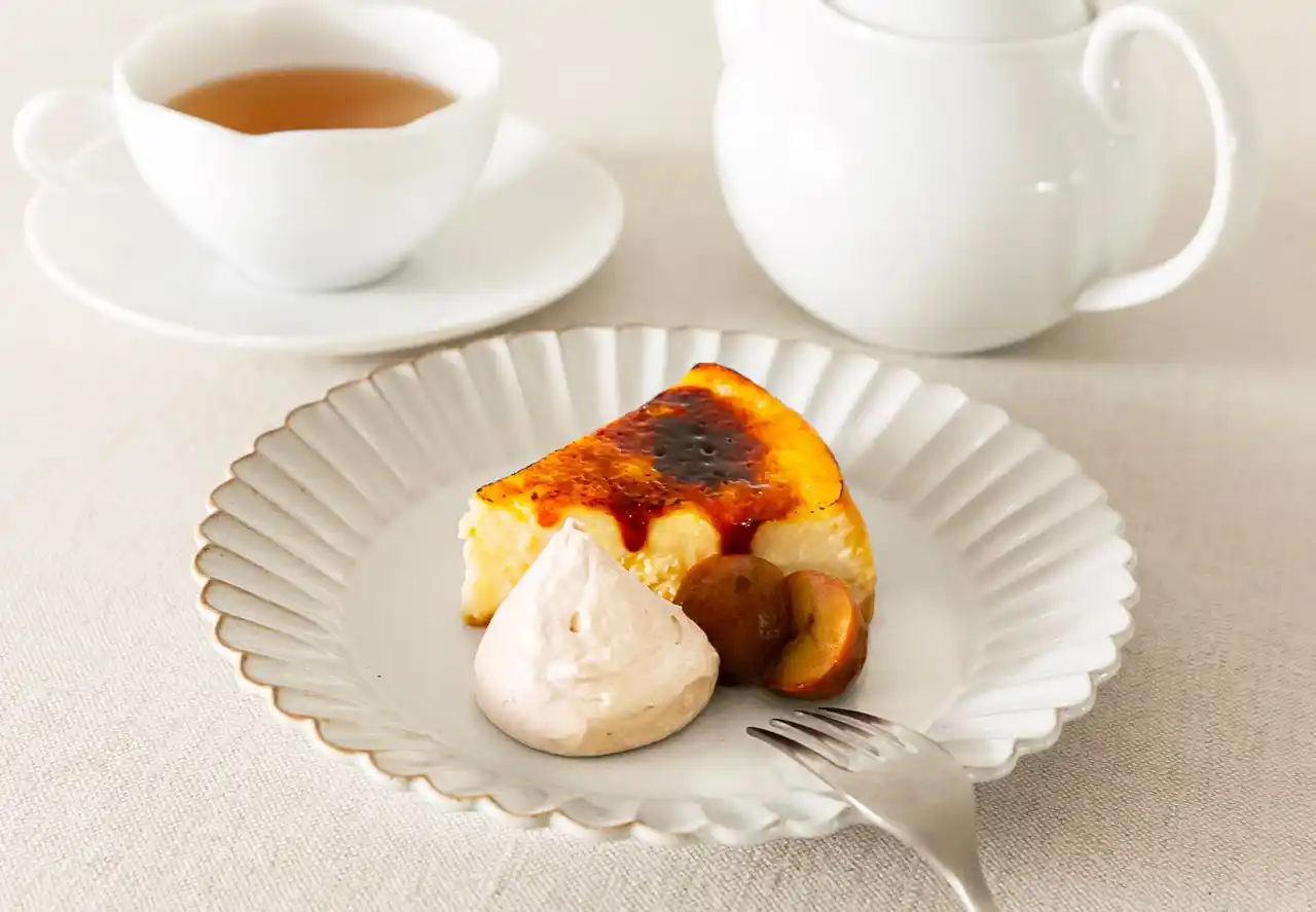 夏メニューから全店で提供開始となった、人気の「ブリュレチーズケーキ」に、秋限定のフレーバーが登場。表面をパリッとキャラメリゼした濃厚なチーズケーキに、マロンクリームと栗の甘露煮をトッピングしました。 |