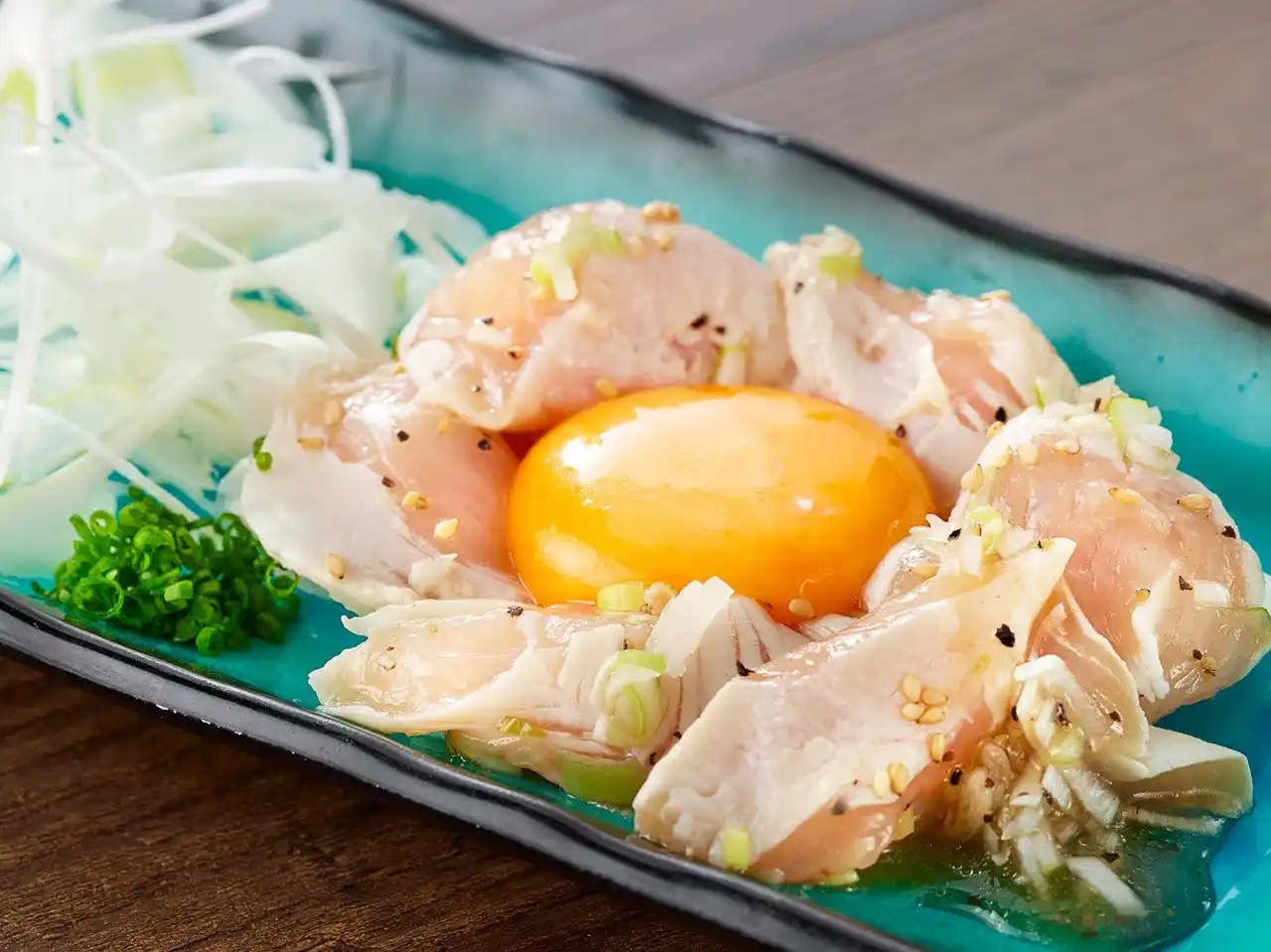 定番メニューの鶏ささみのネギ塩和えに濃厚な卵黄を絡めることでさらに旨みが増した一品に。 ※菌検査を実施済みの商品です。 |