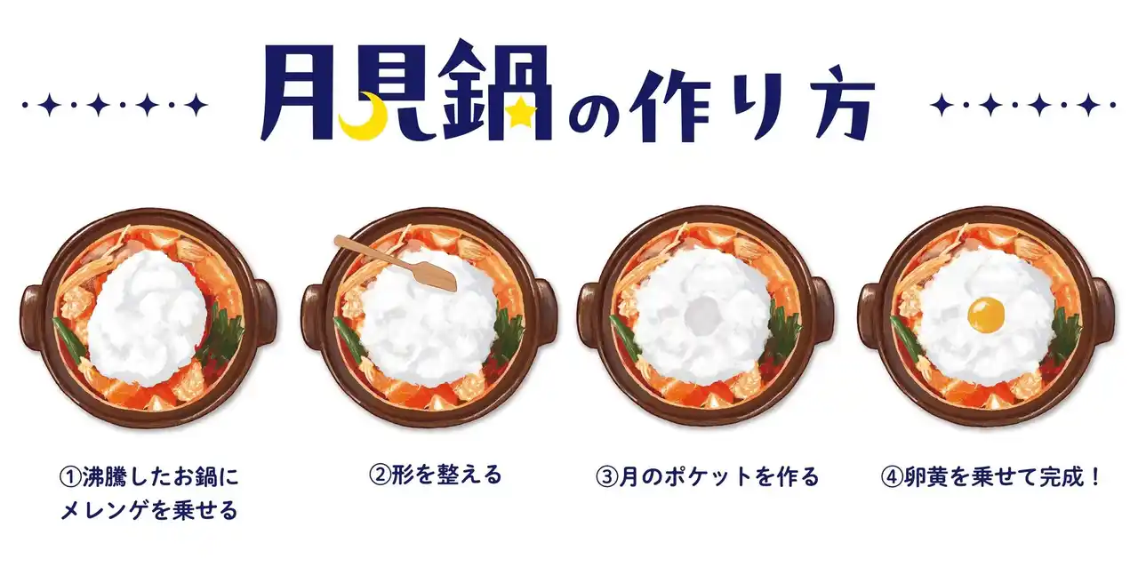 (1) 月見鍋を注文し、オリジナル月見鍋を作って写真を撮影 |