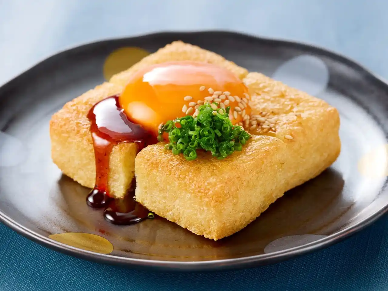 赤から鍋の人気具材の「油揚げ」をカリっと焼き上げ、卵黄と甘辛ソースがあわさった味わいはやみつきの旨さです。 |