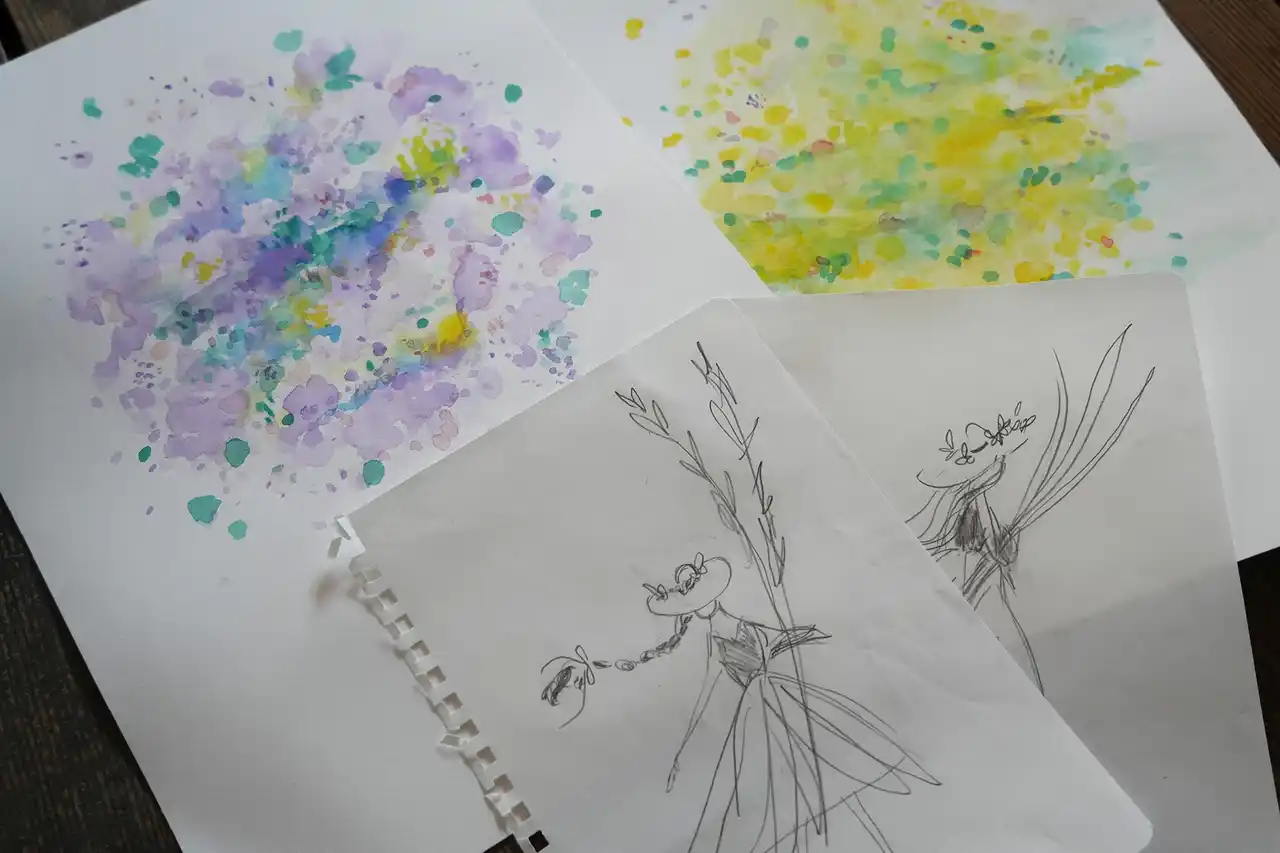 小さな妖精が植物の霧玉を届けるデザインの原画 |