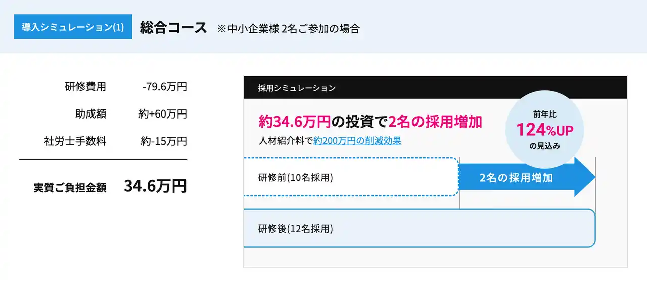 価格:1人あたり39.8万円~(助成金活用で1人あたり実質10万円以下) |