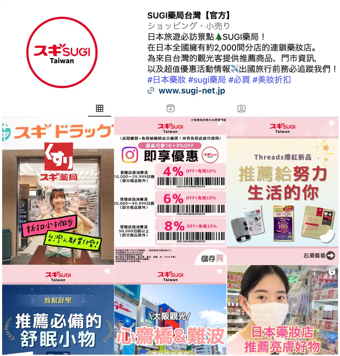 ▼スギ薬局台湾向け公式Instagram : https://www.instagram.com/sugidrug_tw/ ※フォロワー数は運用開始約1か月で3,000人を突破! |