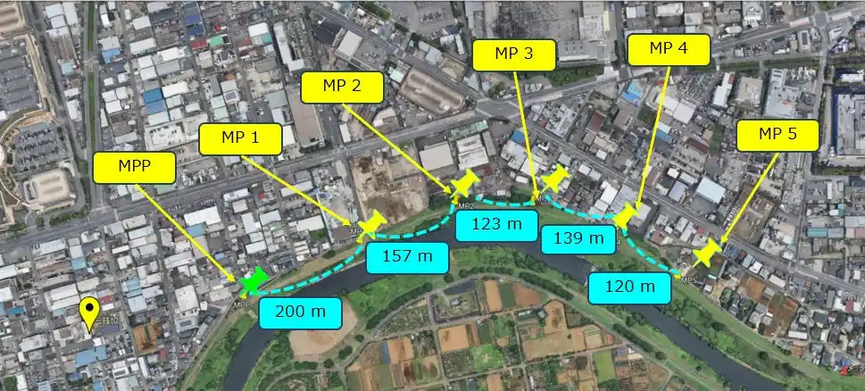MPP(親機)から順に5カ所APを設置(MP1~MP5)して、メッシュリンクを構成し、各MPからインターネット接続を確認。各ホップ間のRSSIが高く良好な通信速度を維持できていることが確認されました。 |