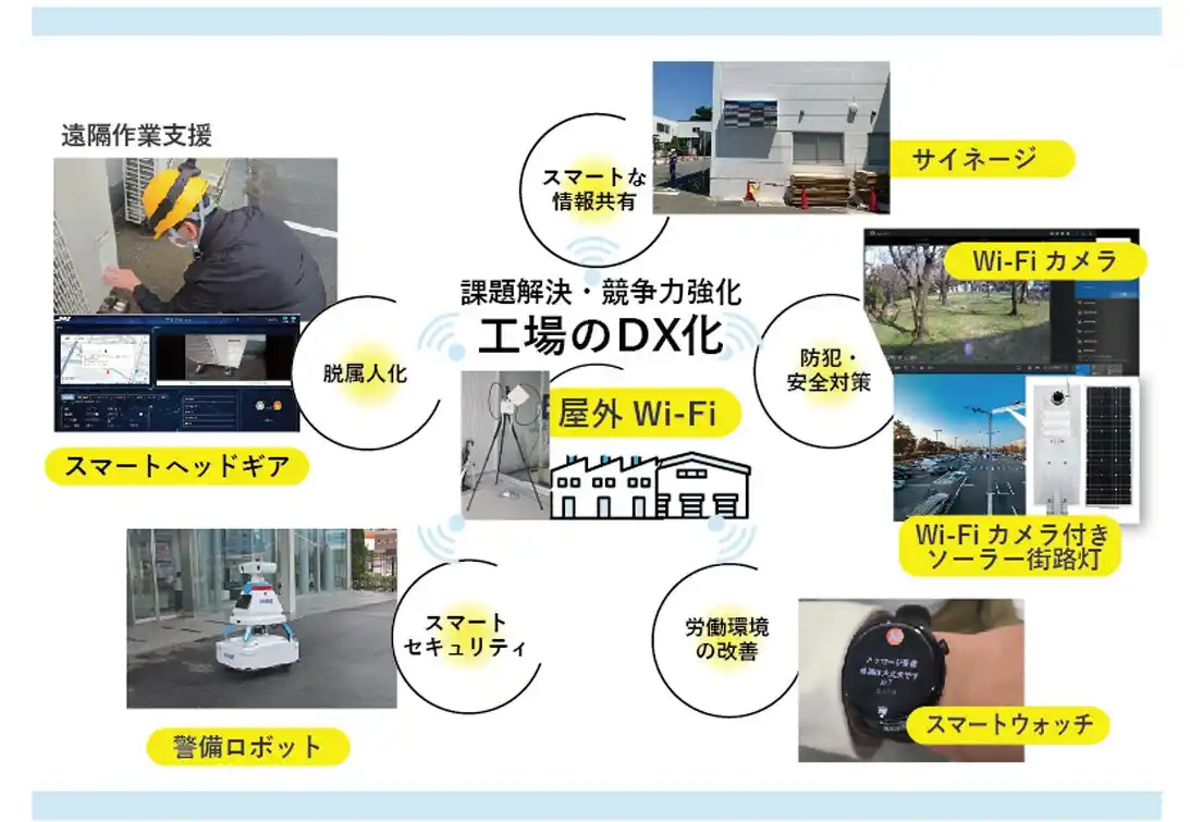 工場全体のDX化を実現する「屋外メッシュWi-Fi」 |