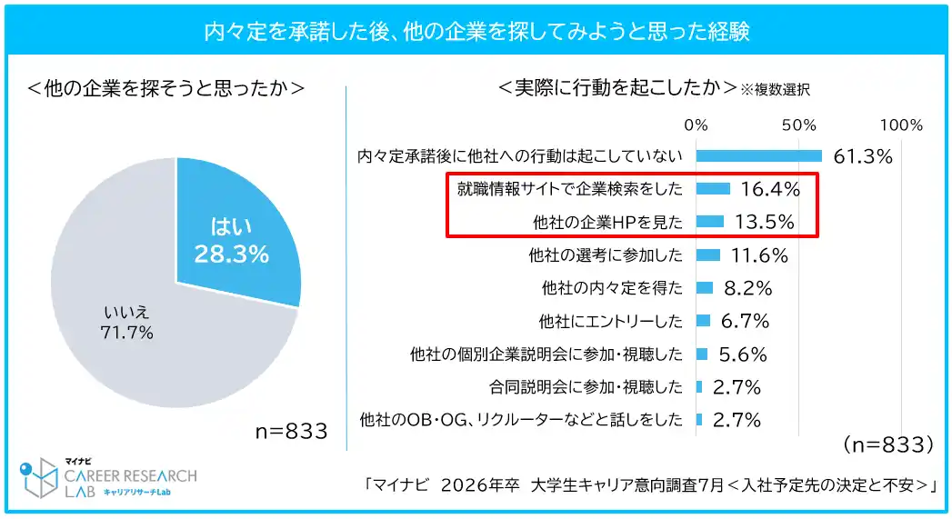 学生の約4人に1人は入社予定先の決定後、他の企業を探そうと思ったことがある |