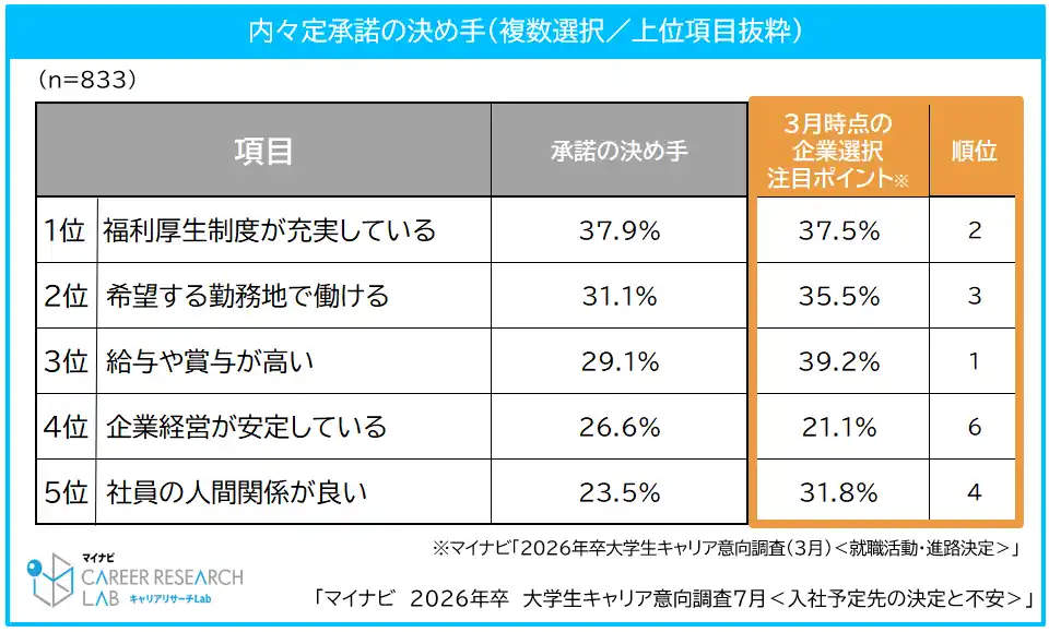・内々定承諾の決め手は「福利厚生」。企業選びの最終判断は、給与よりも“働く環境”を重視【図3】 |