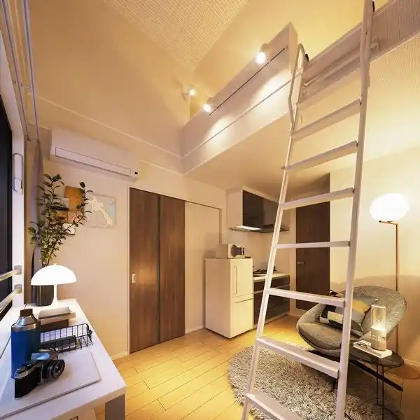 1階は、洗面一体型のサニタリーキッチンとシャワーユニットを採用し、コンパクトながら機能的に水回りを配置した14.58平方メートル 、2階は3.9帖のロフトを設け空間を有効活用した20.15平方メートル +ロフトとなっています。どちらも広さを抑えることにより、好立地でも若年層が無理なく暮らせる家賃水準となるよう工夫しています。 |