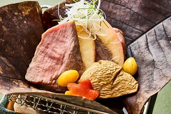 強肴 朴葉味噌焼き(長野県産和牛 焼きりんご 銀杏 信州きのこ) |