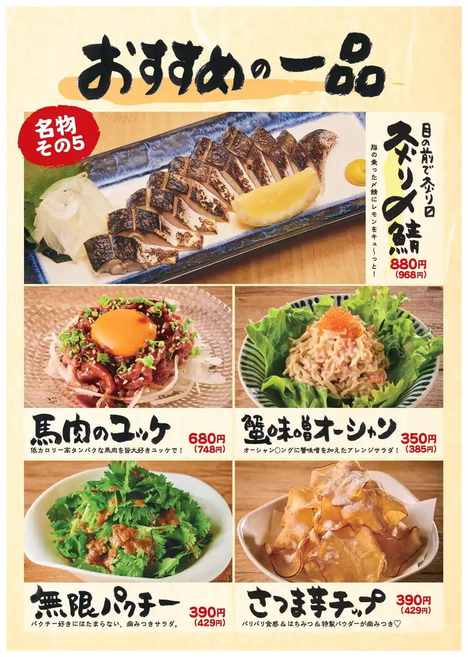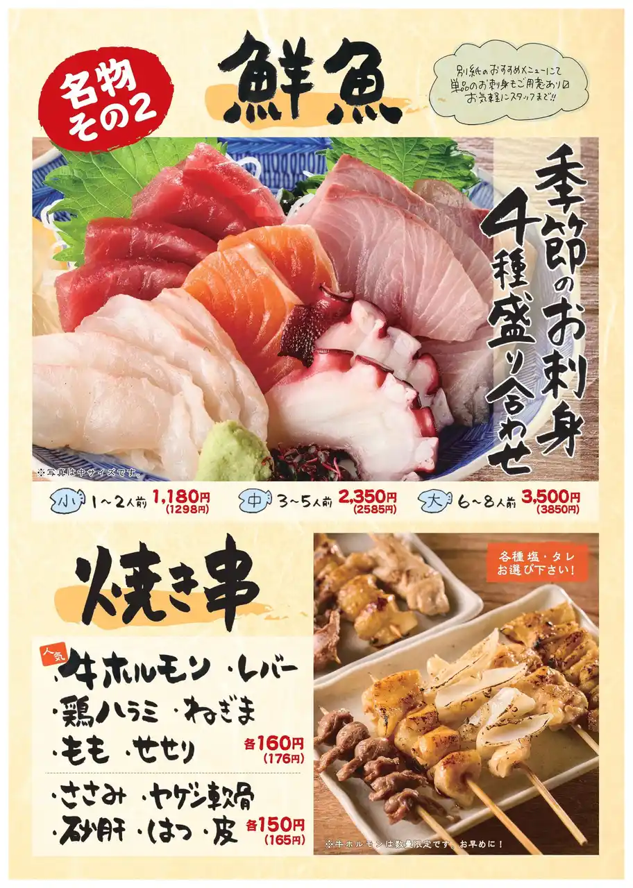 「仕事終わりについ行きたくなるお店」をコンセプトに、居心地を重視した気さくな接客と日常的だけどひと手間加わったお料理で、地域の皆さんの「元気をもらえる人生の1ページ」の居場所を目指す居酒屋ブランドです。 |