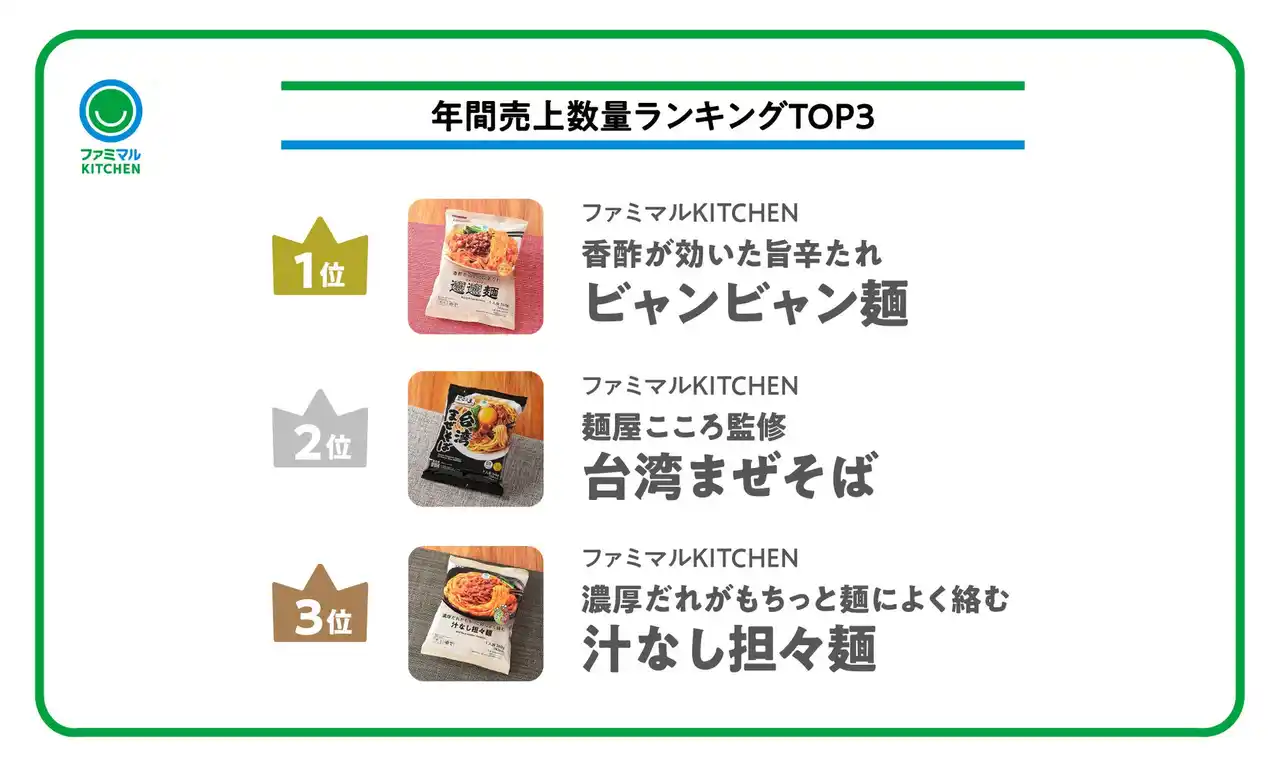 「香酢が効いた旨辛たれビャンビャン麺」が「ファミマルKITCHEN」の辛旨冷凍食品のカテゴリの年間売上数量で1位でした。本商品は2024年10月に発売された商品のため、発売から1年未満で年間1位を獲得したことになります。 |