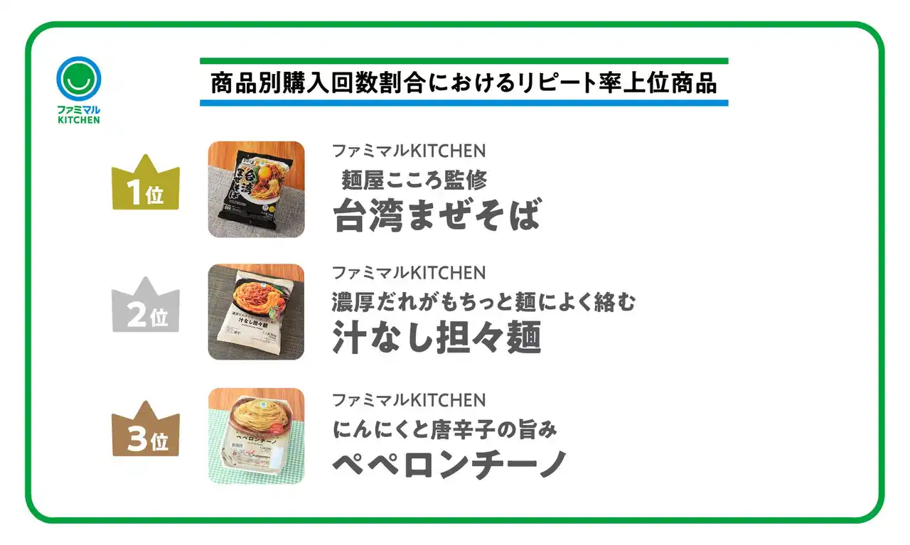 そして2位、3位には、「麺屋こころ監修台湾まぜそば」、「濃厚だれがもちっと麺によく絡む汁なし担々麺」と続きました。これらは1年間で200万食以上を売り上げた人気商品です。4位以下の商品は、トップ3とは大きな差があり、辛旨系の中でも人気商品が固定化している傾向が伺えます。 |