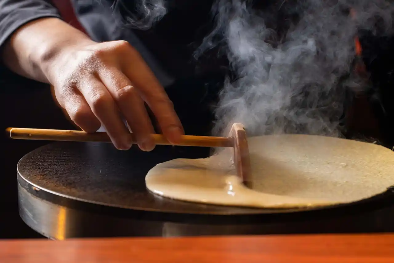 「ガレット(そば粉のクレープ)」を焼きたてで提供 |