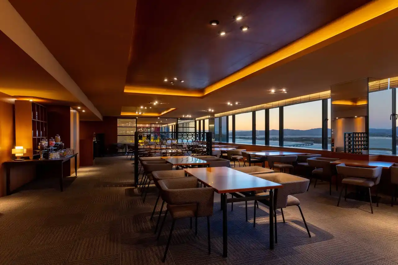 浜名湖を一望できるラウンジは、まさに大人の隠れ家。「エグゼクティブツイン」に滞在中のお客様専用で、ティータイムやイブニングドリンクが楽しめます。客室から望む朝焼けの湖、夜のライトアップされた湖畔など、滞在そのものが非日常を感じさせる体験に。都会の喧騒から一歩離れ、心を整える秋の静養旅におすすめです。 |