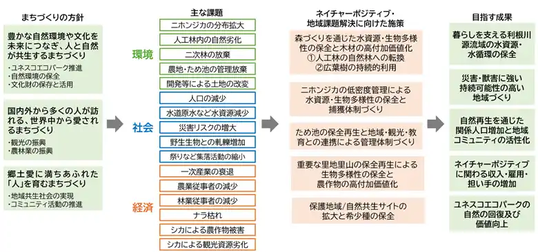 図2.みなかみ町のネイチャーポジティブ、地域課題解決に向けて設計したロジックモデル |