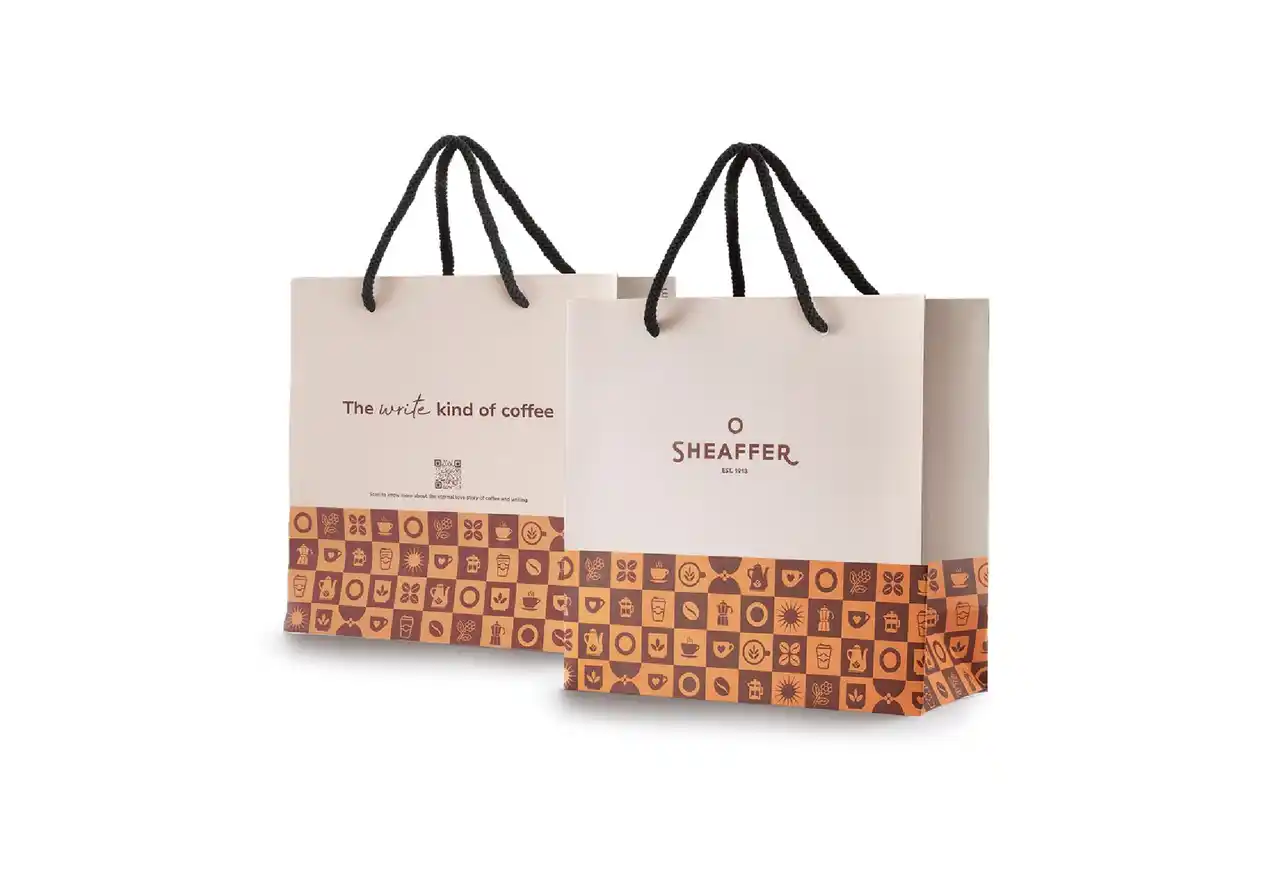 ショッパーはコーヒーをテーマにしたイラストがデザインされたスペシャルバージョンです。コーヒーエディションのギフトセットをご購入の方には、こちらのショッパーでお渡しします。 ※コーヒーフレーバーインク単体には、こちらのショッパーは付属しません。 |