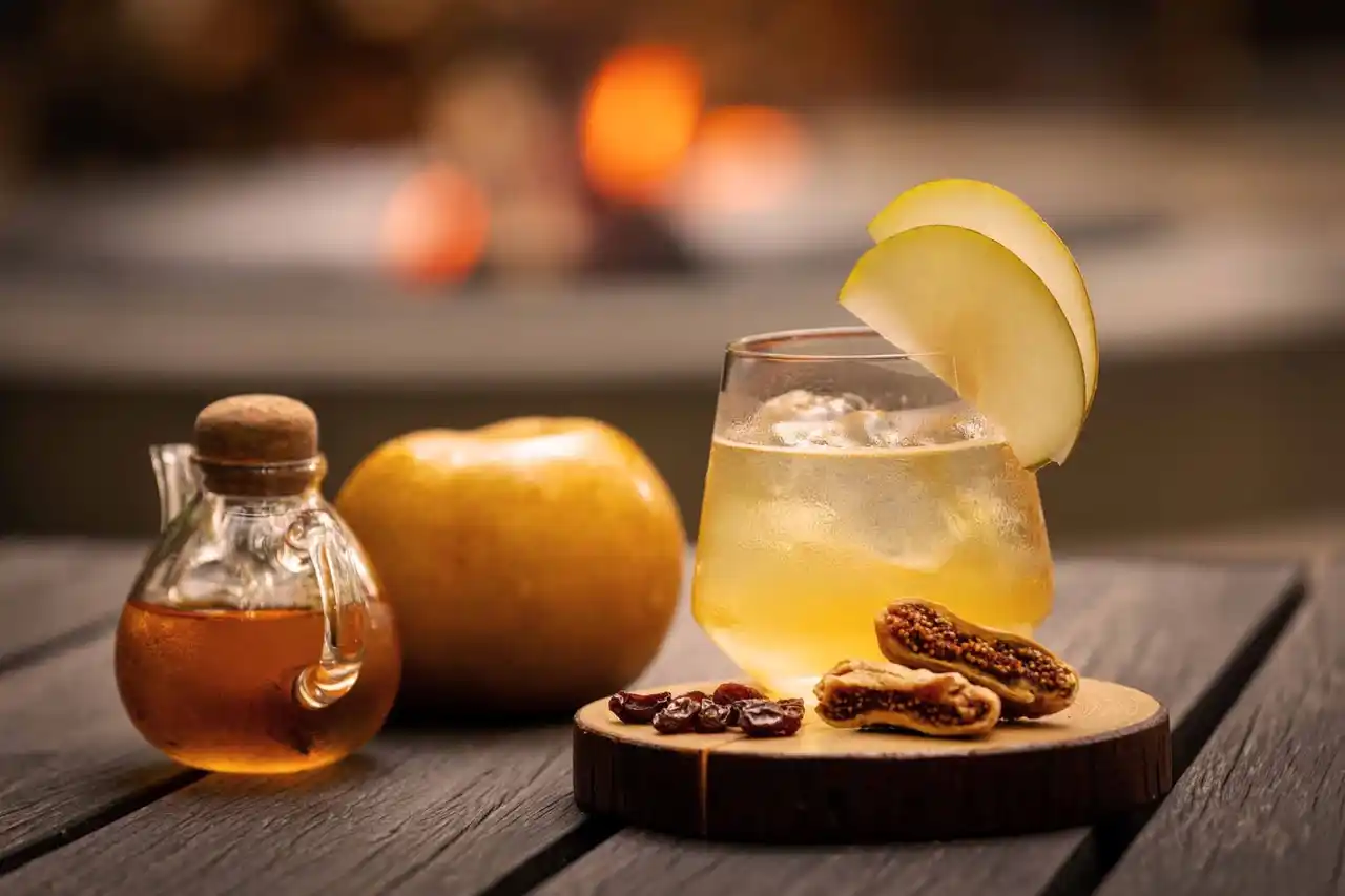 | 秋の夜長に揺らめく焚き火を囲んで、お酒を嗜む時間を過ごす「焚き火BAR」と、森の中に日替わりでギターやオカリナなどの音色が響く「森の演奏会」を開催します。夕食後に、秋限定のドリンクとして、「和梨のアールグレイクーラー」を味わえます。アールグレイの柑橘香るリキュールに、甲州ワインを蒸留したブランデーとコクのある風味豊かな和梨を合わせました。就寝前の静寂に包まれる夜の森で、焚き火とともに穏やかな時間を過ごせます。 | |||