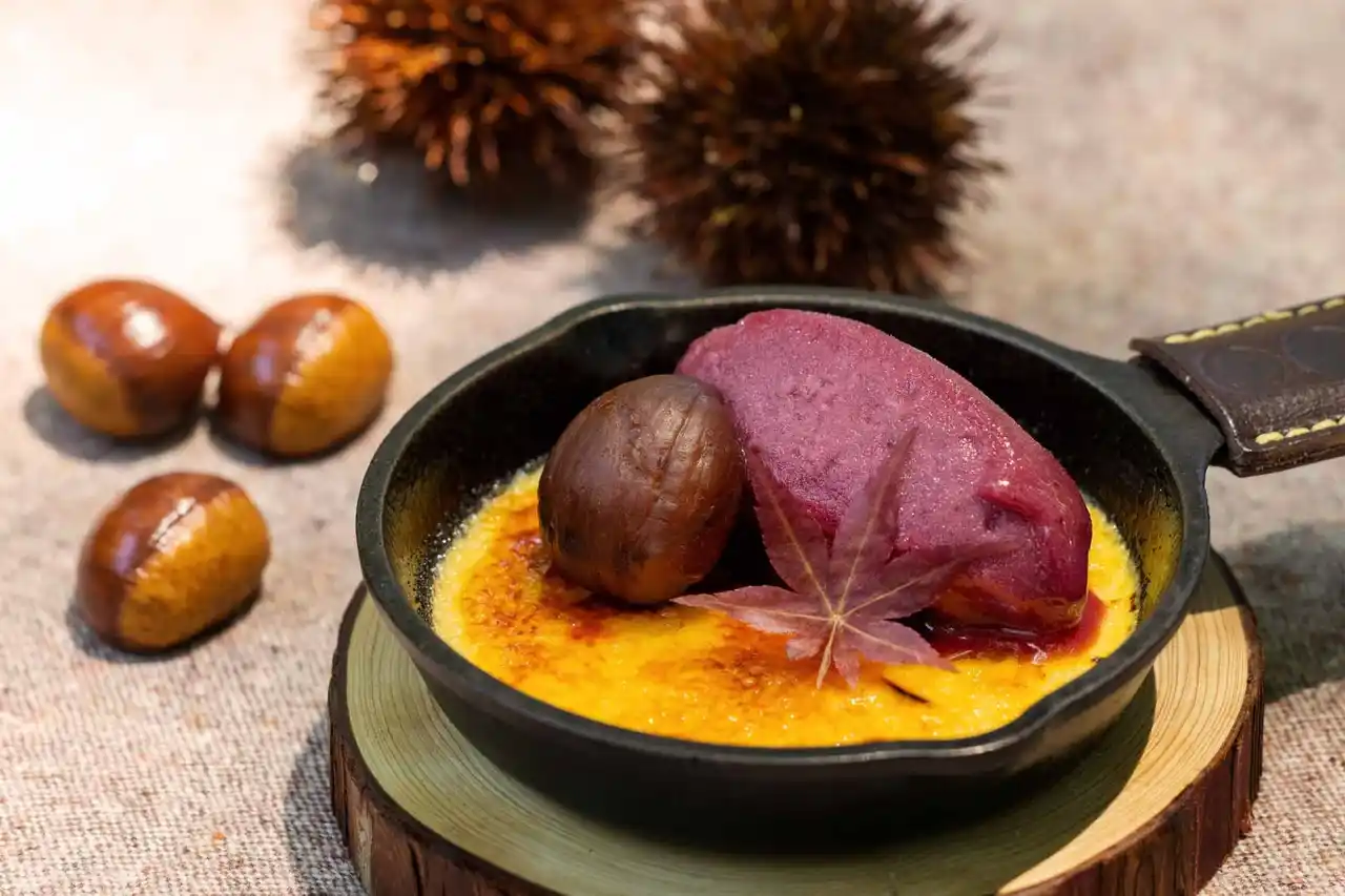 | ~栗のクレームブリュレを楽しむひとときや、森の散策路で秋ならではの自然の恵みを見つけるウォーキングを期間限定で提供~ |