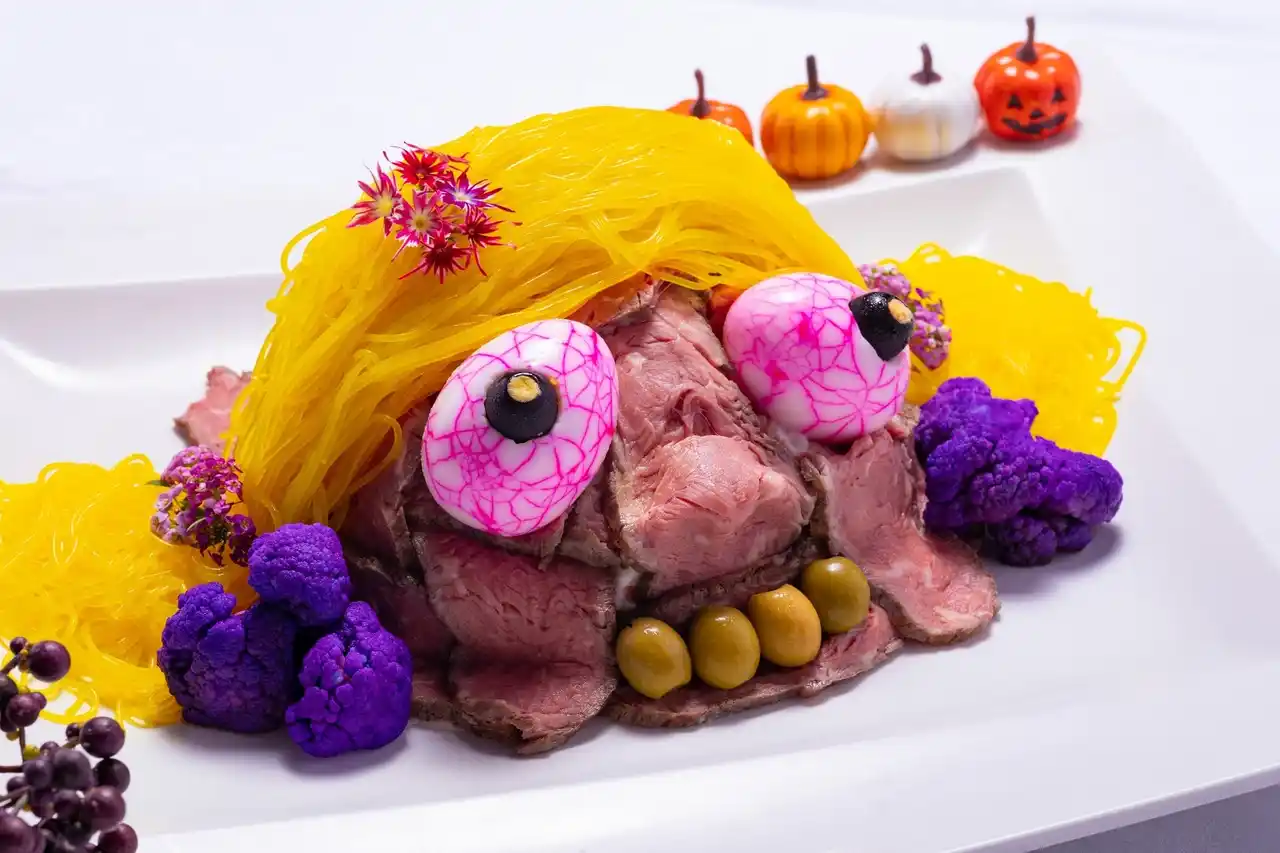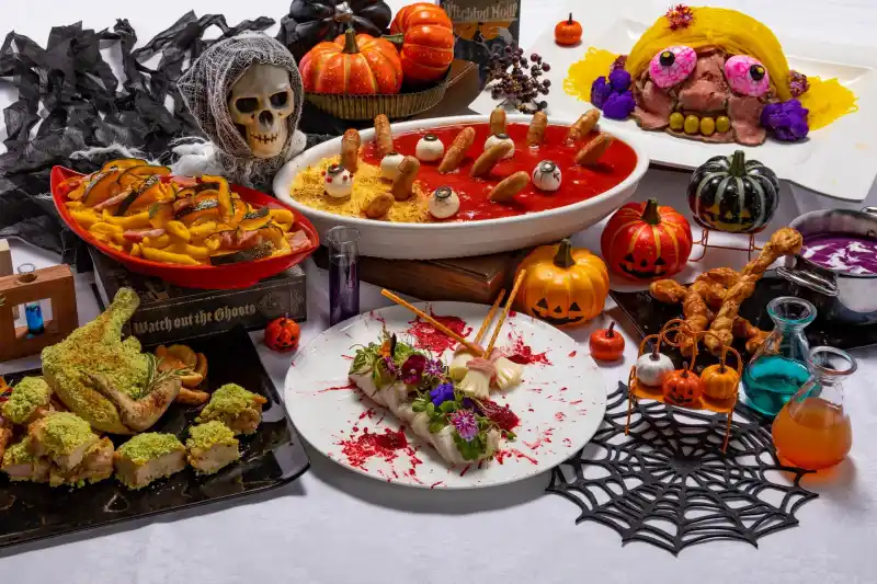 沖縄本島最南端に位置する糸満市にあるサザンビーチホテル&リゾート沖縄(所在地:沖縄県糸満市西崎町1-6-1 総支配人:具志堅一)では、2025年9月1日(月)から10月31日(金)までの期間中、オーシャンビューレストラン「REIR-レイール-」にて、「ランチブッフェ~秋の収穫祭~」を開催いたします。また、2025年10月30日(木)・31日(金)の2日間限定で、Halloween Menuが登場!!装飾を施した店舗内がHalloween気分を盛り上げてくれます 🦇 |