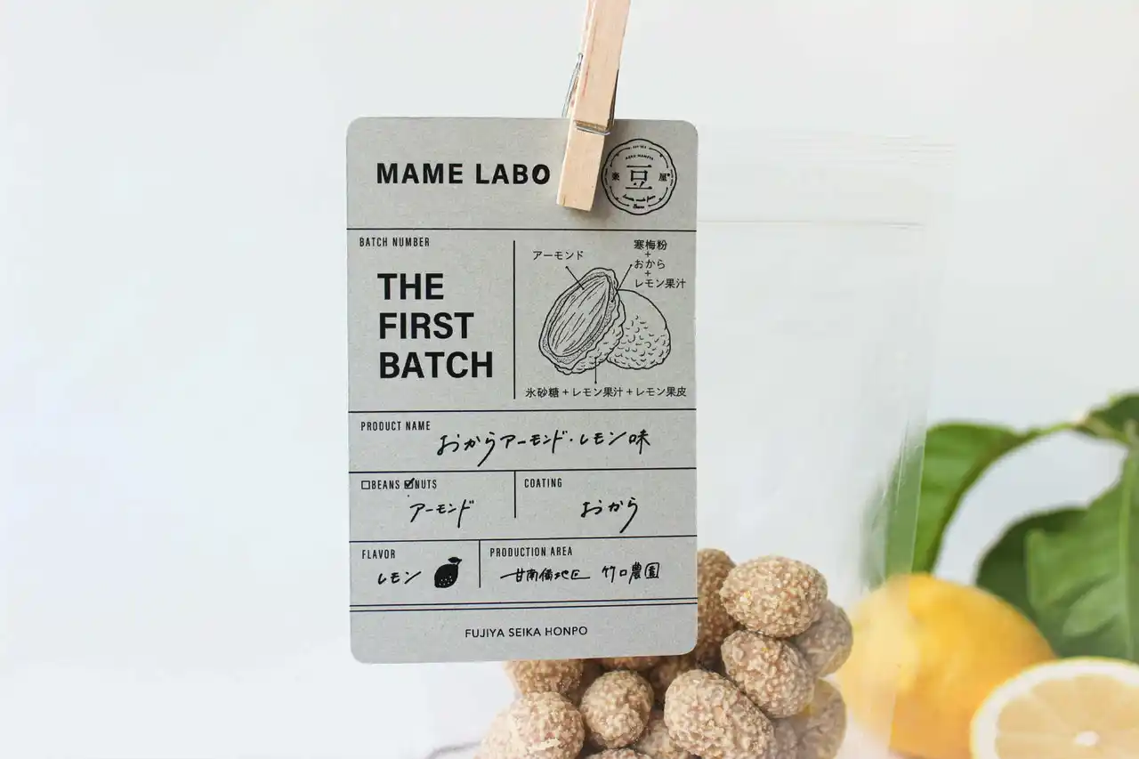 豆菓子屋の「楽豆屋」を運営する株式会社冨士屋製菓本舗(所在地:大阪府富田林市、社長:北野登己郎)は『もっと身体に優しい豆菓子を作りたい』思いから小麦粉や添加物を使わなくてもおいしい豆菓子を目指してたどりついた食材が「おから」でした。甘南備地区(かんなびちく)で規格外のレモンの取り扱いに困っている農家さんとの出会いで【おからアーモンド・レモン味】ができ、限定数のファーストバッチと楽豆屋文庫が付いた新作を自社オンラインショップと本社の店舗、富田林でリニューアルオープンしたサバーファームで販売を開始いたした。