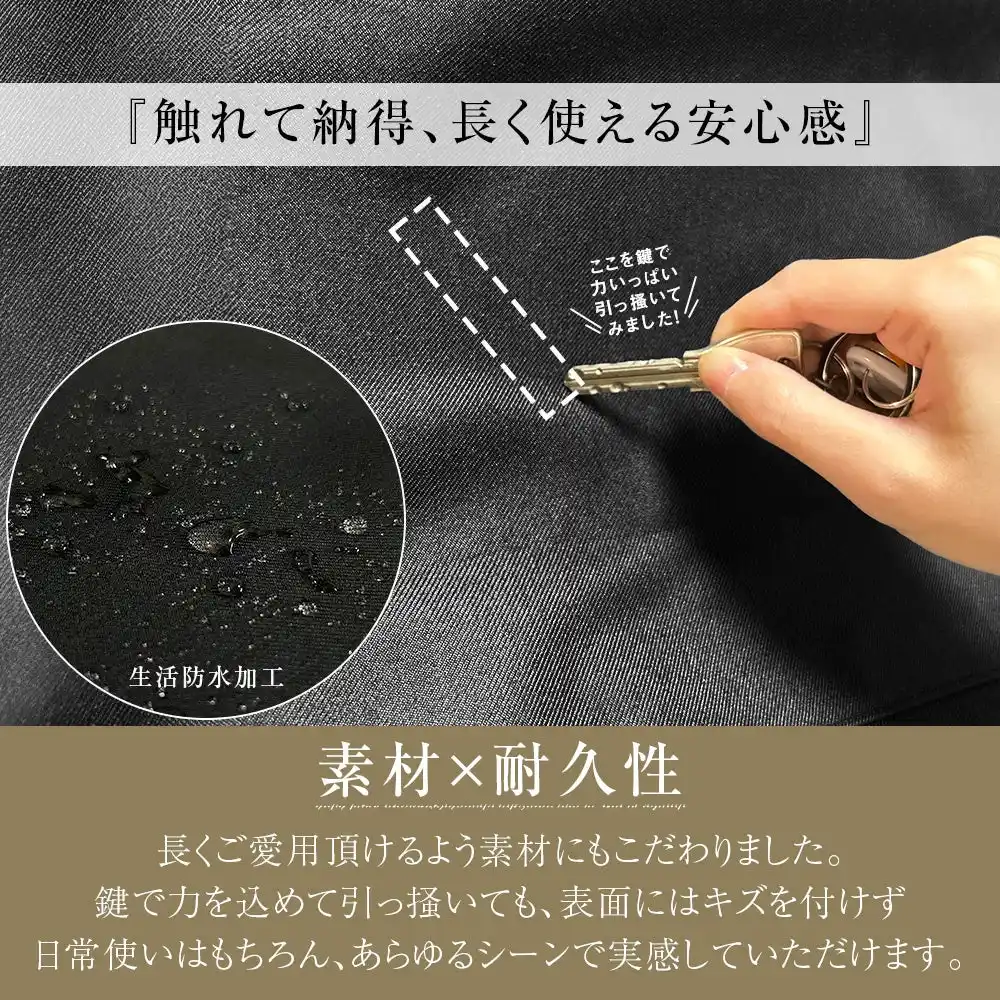 180度フルオープン設計により、荷物の出し入れが非常にスムーズです。ネクタイを収納するポケットや、小物整理に役立つ複数のポケットも完備。さらに、本体表面には耐久性の高いオックスフォード素材を使用しており、機能性と耐久性を両立し、ストレスフリーな出張を実現します。