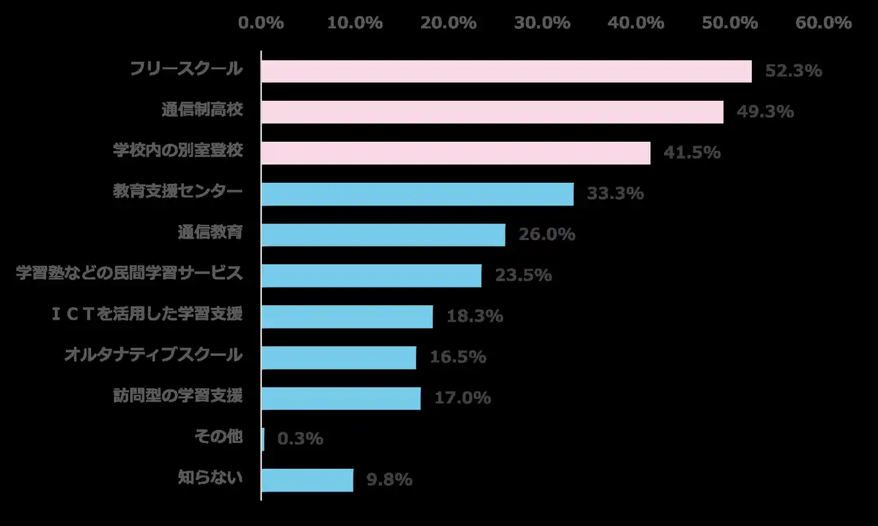 ・フリースクールの認知率52.3%、不登校支援の選択肢として最多に |