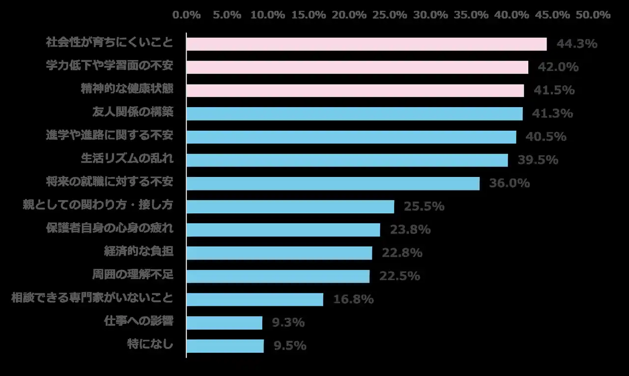 ・保護者の不安、最多回答は「社会性が育ちにくいこと(44.3%)」 |