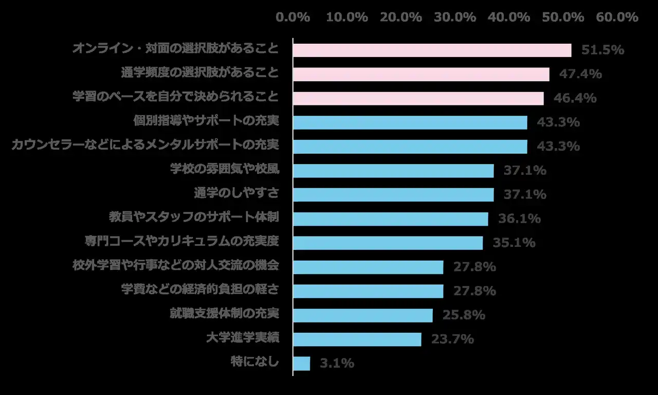 ・通信制高校選びで最も重視するのは「学習スタイルの自由度」 |