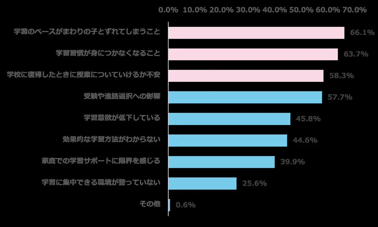 学習面での不安、最多回答は「学習のペースがまわりの子とずれてしまうこと(66.1%)」 |