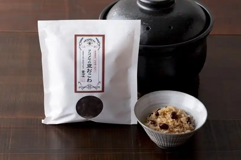 アコメヤの豆おこわ しょうゆ 1,200円 北海道十勝産の大粒でほくほくとした食感の金時豆と、昔ながらの醤油の産地、千葉県醸造の濃口醤油を使用しました。艶やかで香ばしい本格醤油おこわを手軽にお愉しみいただけます。 |