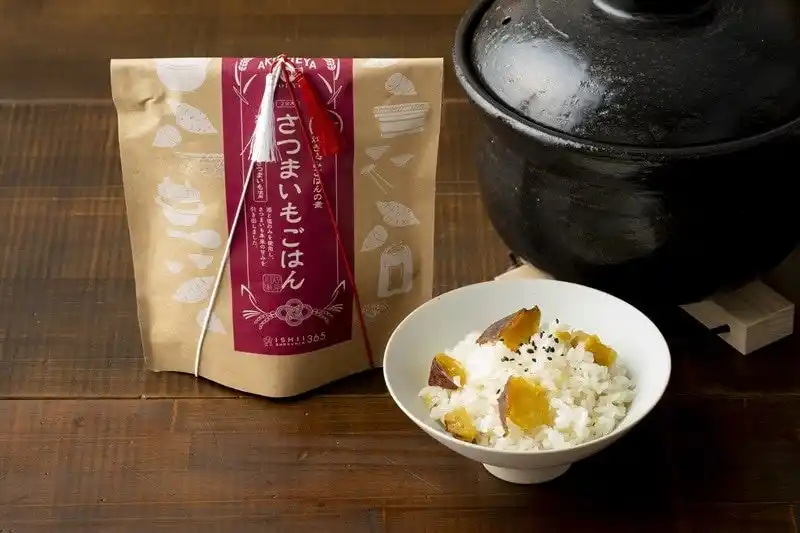 炊き込みごはんの素 さつまいもごはん 1,500円 今年収穫した京丹後市産の「紅まいこ」使用。「紅まいこ」は日本海の潮風とミネラル豊富なやわらかい砂丘地で栽培されるため、通常より水はけが良く、身が引き締まり、甘みを凝縮する特長があります。調味液は、さつまいもの素材本来の甘さを活かすため、京丹波の地酒「丹」と赤穂の塩で仕上げています。 |