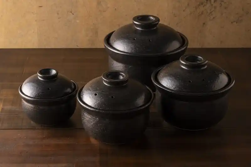 アコメヤオリジナル 有田焼 ごはん土鍋 1合10,450円、2合17,600円、3合22,000円、5合(新宿店・神楽坂店・EC限定)39,600円 遠赤外線効果が高くなるように調合された土を使用し、しっかりと圧力がかかる中蓋と外蓋の“二重蓋構造”で、お米の芯までしっかり熱の通ったごはんが炊けます。1合、2合、3合、5合サイズのラインナップ。ご家族の人数や目的にあわせて、最適なサイズをお選びいただけます。 |