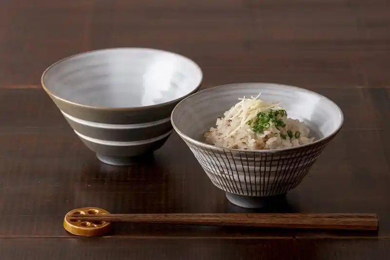 越前焼 杉形碗 嵌縞(かんこう)・十草(とくさ) 各4,180円 日本六古窯のひとつ、越前焼の飯碗。直線的でシャープなフォルムに深さと高さを備え、たっぷりよそえる実用性も魅力。越前の土と伝統技法を用い、手びねりで丁寧に仕上げました。美しい焼き上がりが、現代的な中にも歴史の趣を感じさせる逸品です。 |