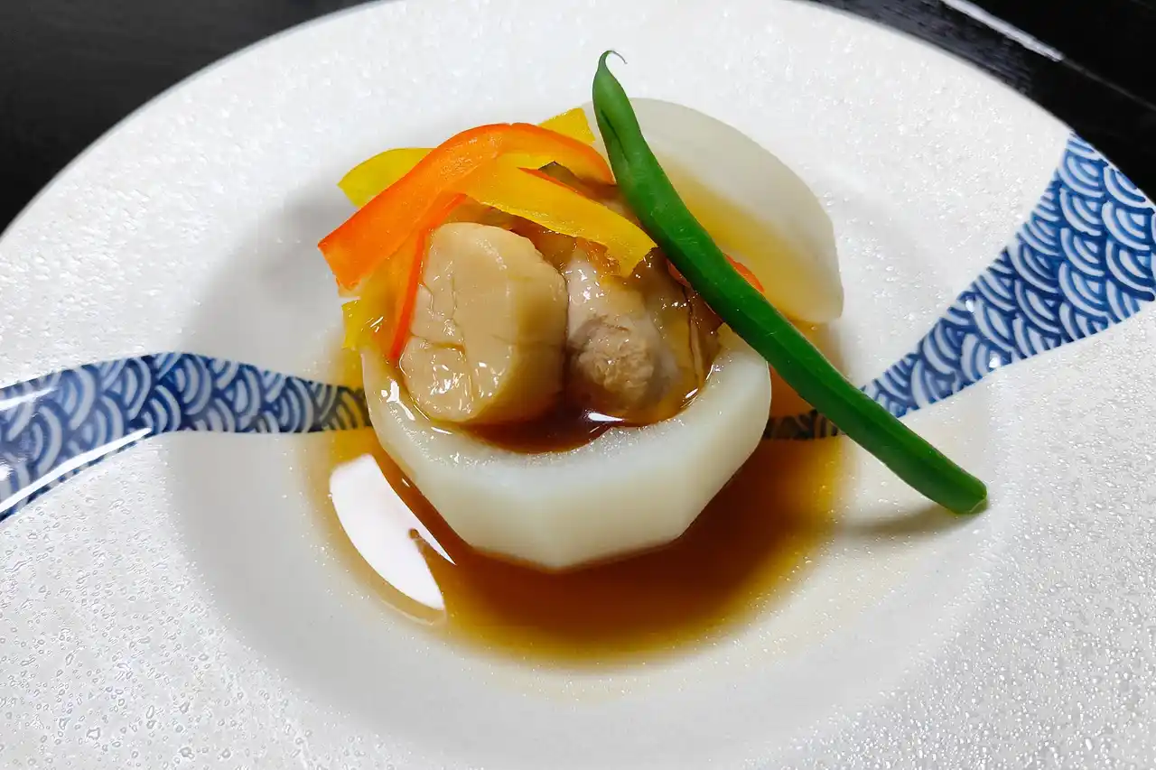 | 通常は宿泊のお客様にしかご提供していない蔵群の会席料理を、この2日間だけの特製ランチボックスに仕立てました。小樽祝津産のブランドホタテ「おタテ」や秋刀魚、主に北海道のみで水揚げされる八角など、小樽の旬の恵みを盛り込み、料理長がこの日のために選び抜いた献立です。 | ||||||||||||||||