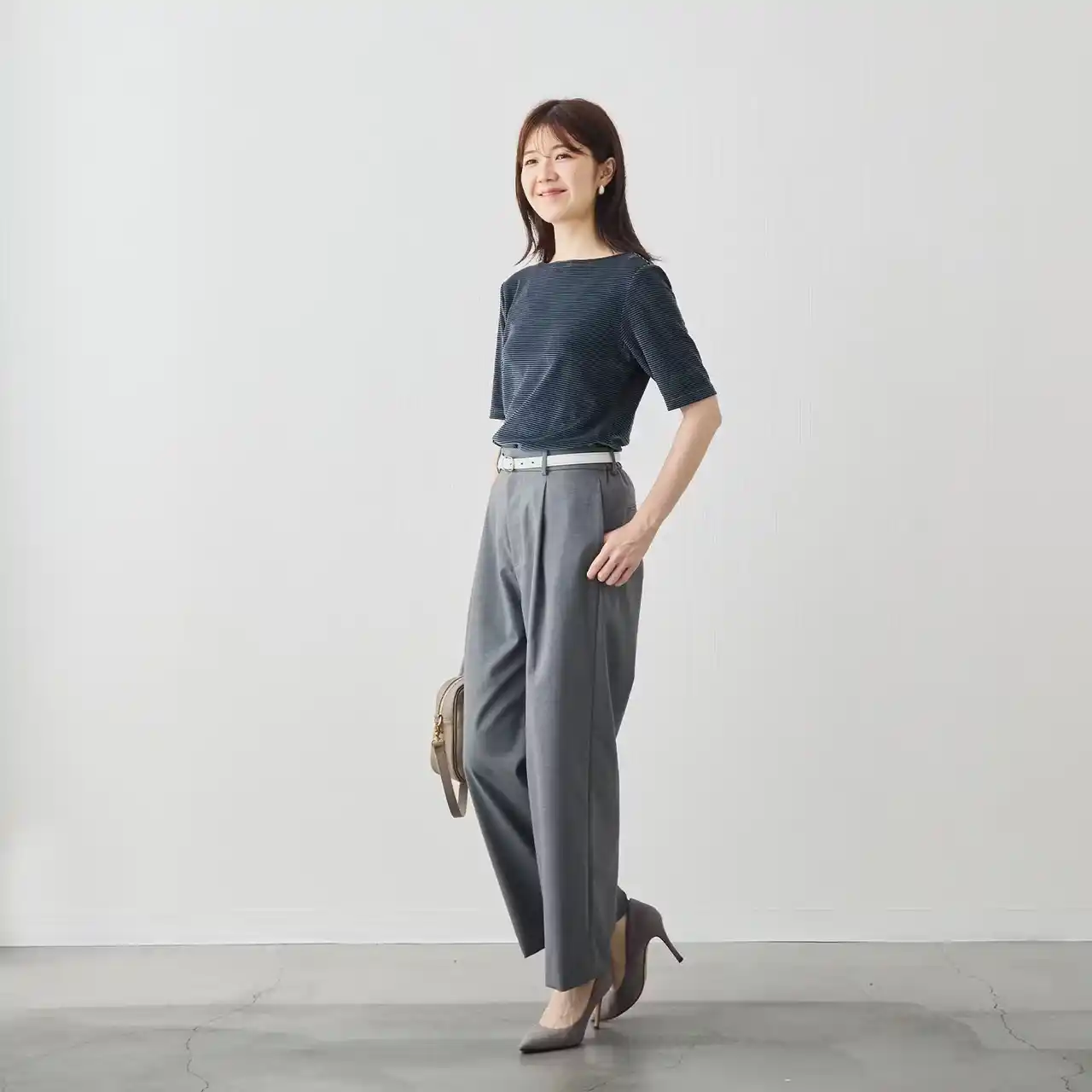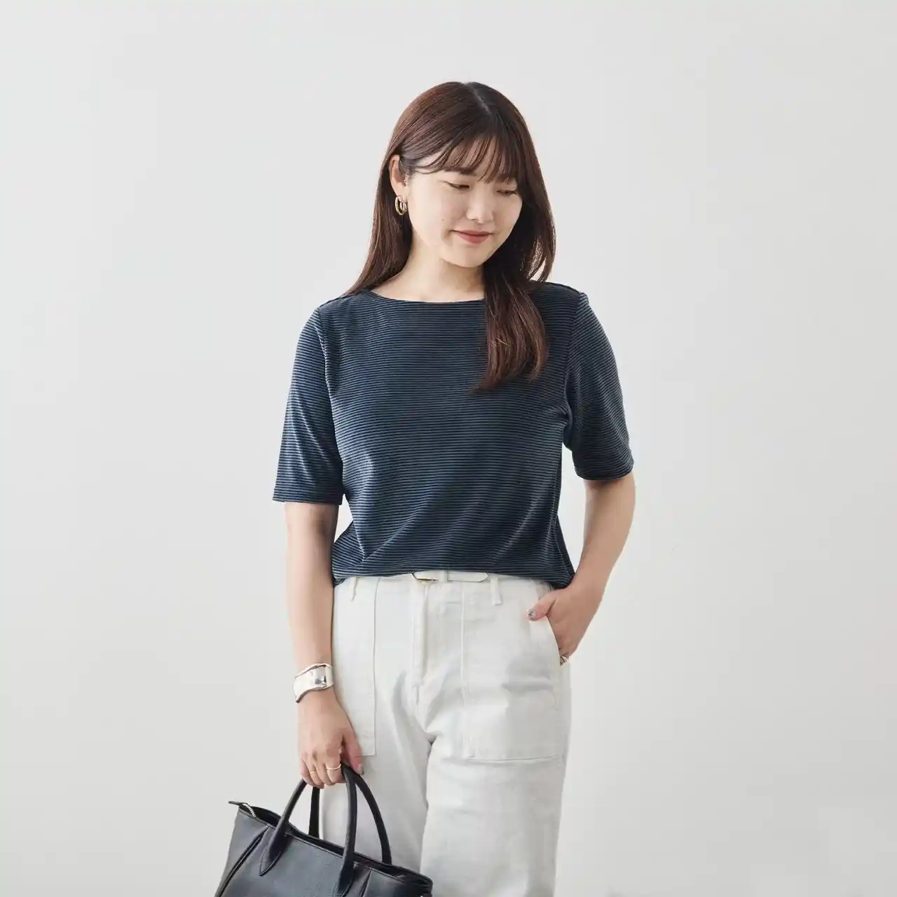 普通のTシャツよりもきちんと見えるので、オフィススタイルにもぴったり。