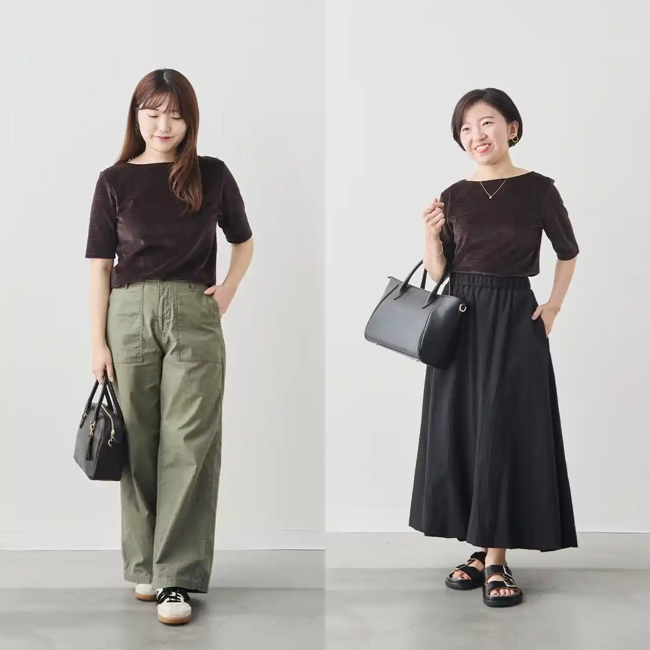 | 手持ちのシンプルなボトムスに合わせるだけで、お洒落なコーディネートが完成! | ||||||||
