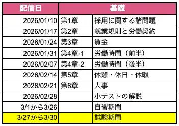 動画配信日から次の配信日までの1週間の間に、動画視聴、小テストを受けるスケジュールで学習に取り組んでいただきます。 |