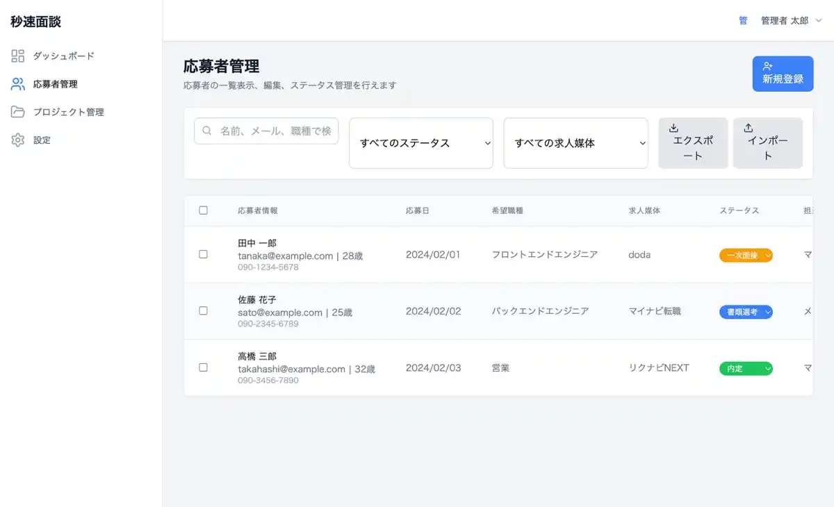 「秒速面談」では、応募検知から日程調整、 |