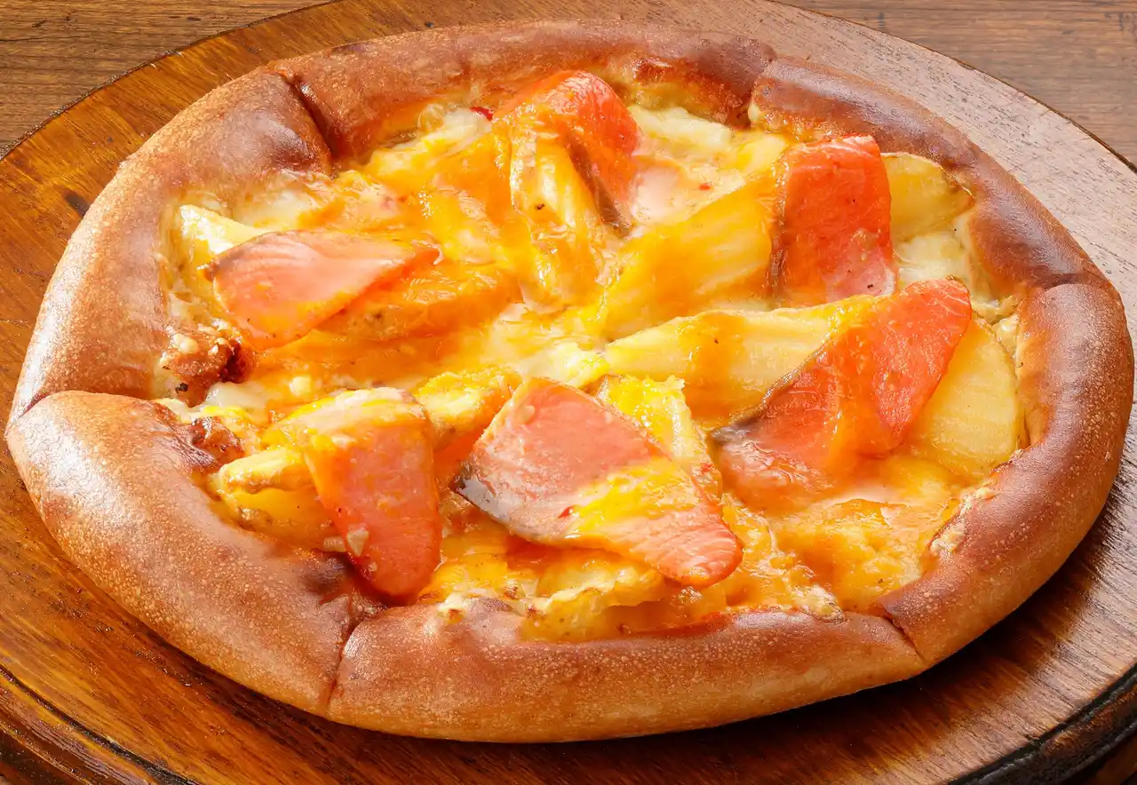 とろける口どけ!サーモン×ポテトのS級コラボ、あなたの心を溶かしちゃう!まさにS級の美味しさ!風味豊かなスモークサーモンとホクホクのベイクドポテトが夢の共演!濃厚なチェダーチーズとプレミアムブレンドチーズに、アヒージョソースとマヨネーズがとろけ合う。一口食べれば、もう止まらない!素材の旨みをギュッと詰め込んだ、贅沢でリッチな味わいをどうぞ。 |