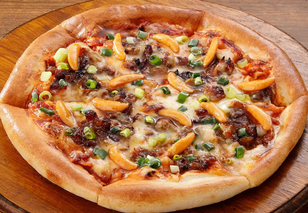 カリッ!ジュワ~!炭焼きカルビ×柿の種、衝撃のKIIハーモニー爆誕!まさかの組み合わせに驚くなかれ!チームKIIピザは、一口食べたら忘れられない衝撃の体験!香ばしい炭焼きカルビに、最大の秘密兵器―カリッと香ばしい「柿の種」。食べれば食べるほどクセになる美味しさ!これはもう、チームKIIだからこそ生み出せた、唯一無二の刺激的なピザだ! |