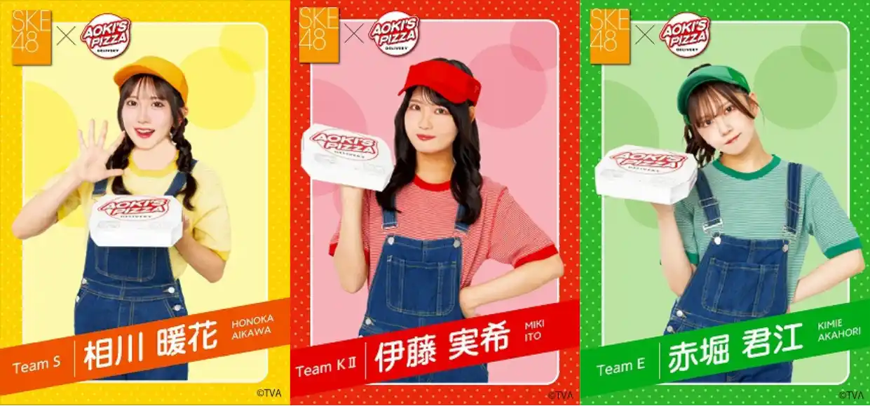 販売するのはSKE48メンバーがチームごとにアイデアを出し合い考案した3種類のオリジナルピザ。優勝賞品の「アオキーズ・ピザ年間無料券」をかけて、販売数で競います。 |