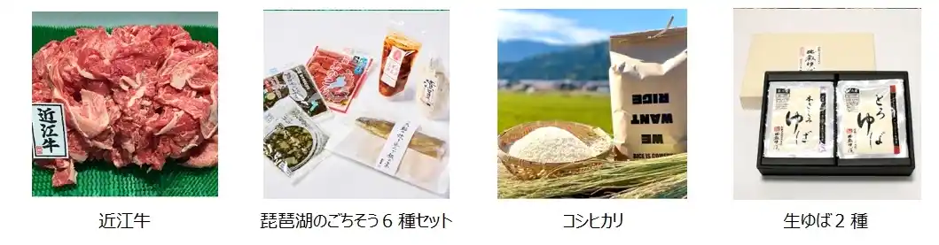 また、LINEスタンプラリーで応募いただける特典、委員会賛同企業である株式会社キッチハイク(以下、キッチハイク)との連携のもと、近江牛や近江伝統野菜の漬物、お米、ゆばなど滋賀県の名産品を揃えました。 |