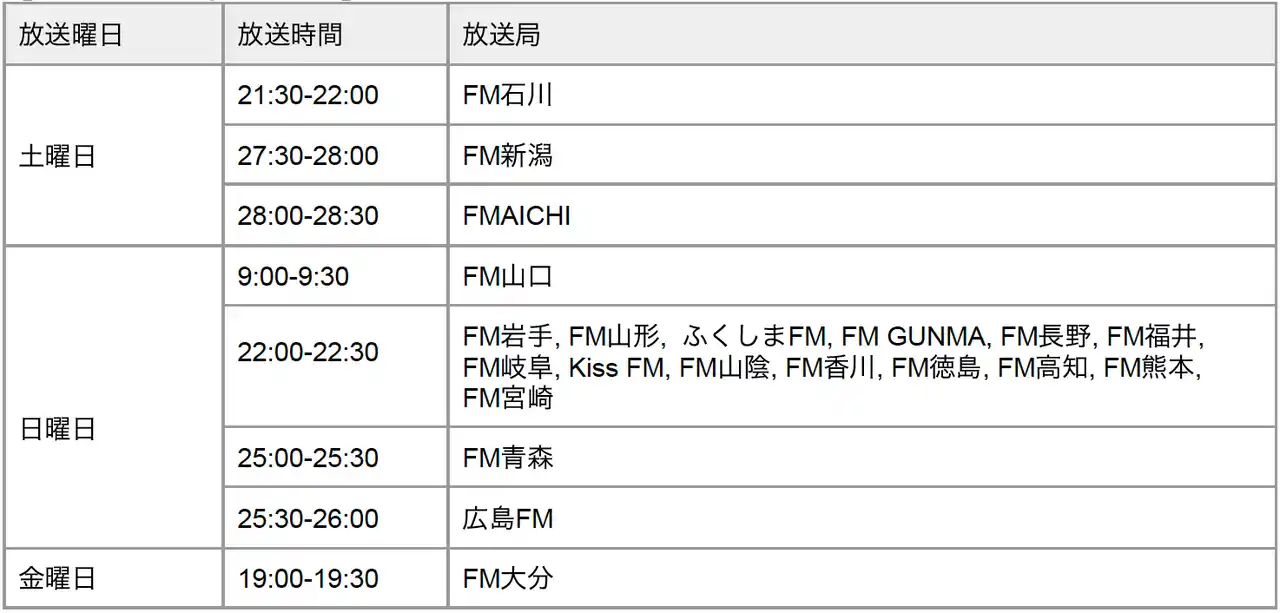 ※各局放送日時の詳細は、放送スケジュール掲載の番組サイトやAuDeeサイトよりご確認ください |