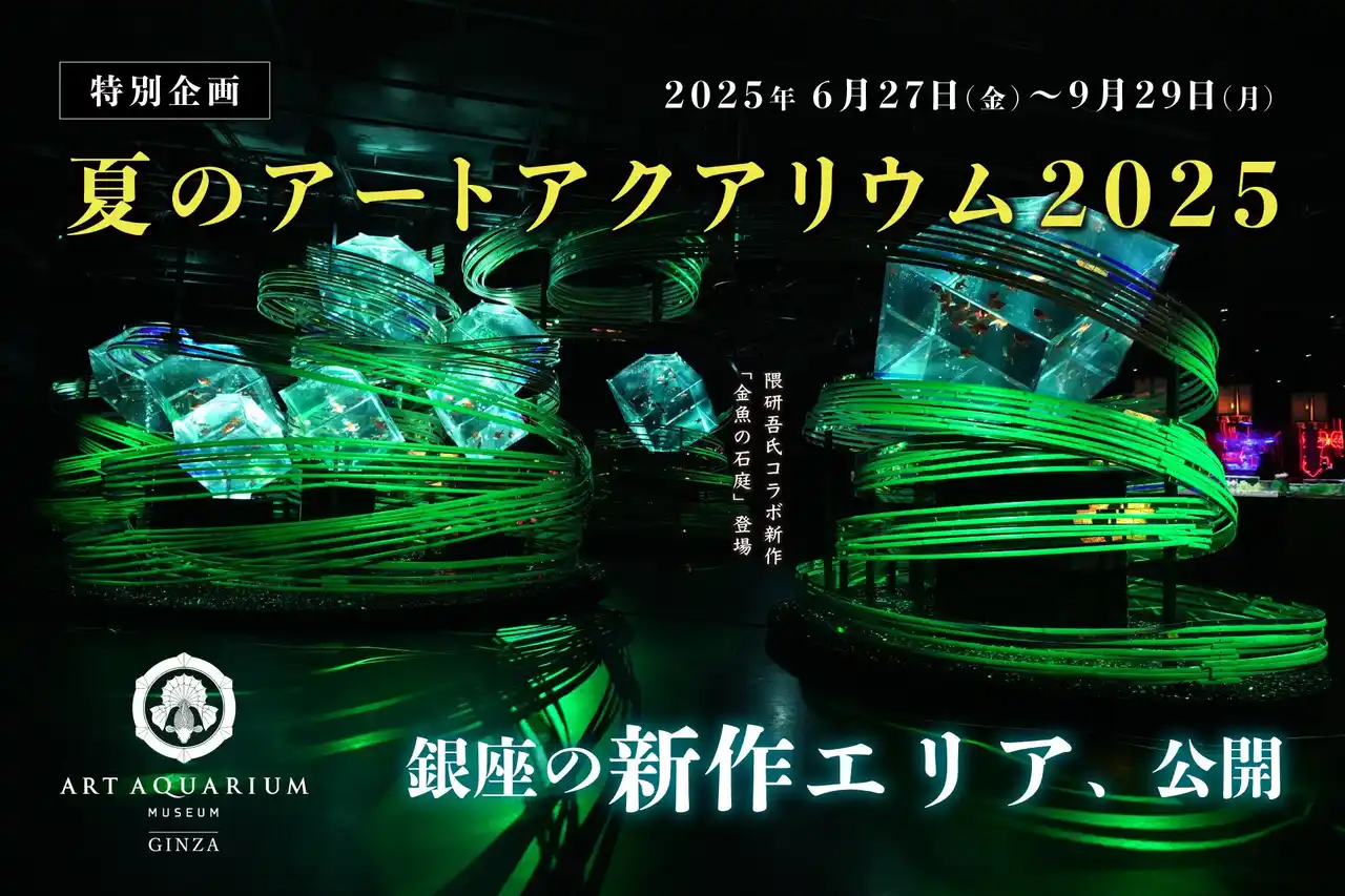 特別企画「夏のアートアクアリウム2025」~銀座に新たな風を吹き込む、進化するアート~が開催中。 今年は3つの新エリアが登場!世界的建築家・隈研吾氏コラボの「金魚の石庭」も初お披露目!“水を感じる”をテーマに、建築美とアートアクアリウムのコラボレーションが誕生します。 |