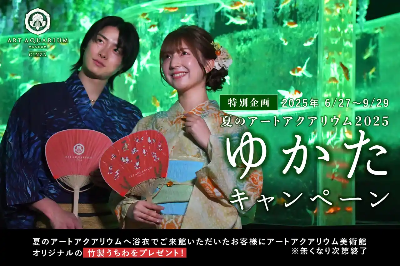 夏のアートアクアリウム2025へ浴衣でご来館の方に、竹製うちわをプレゼント中! |