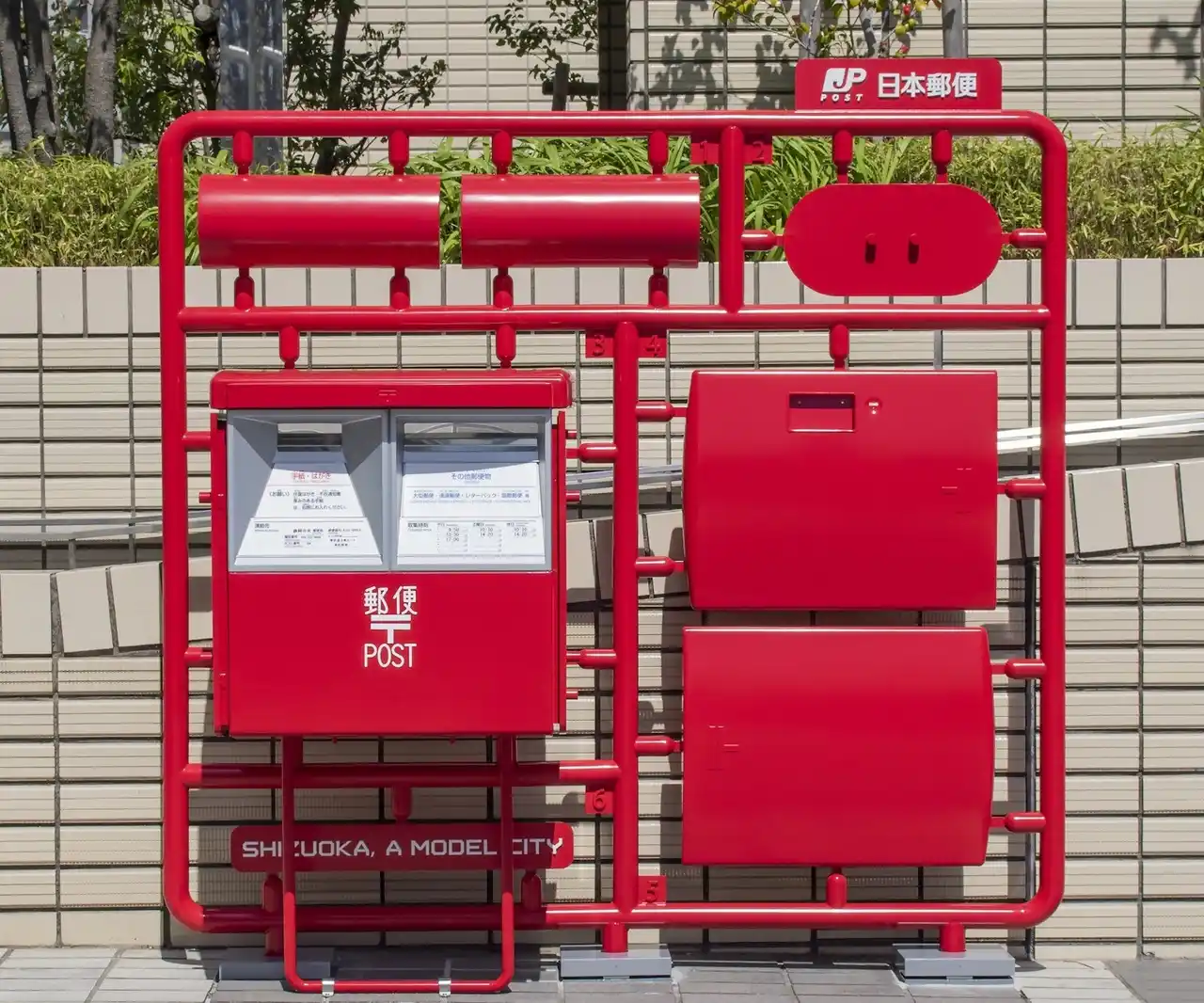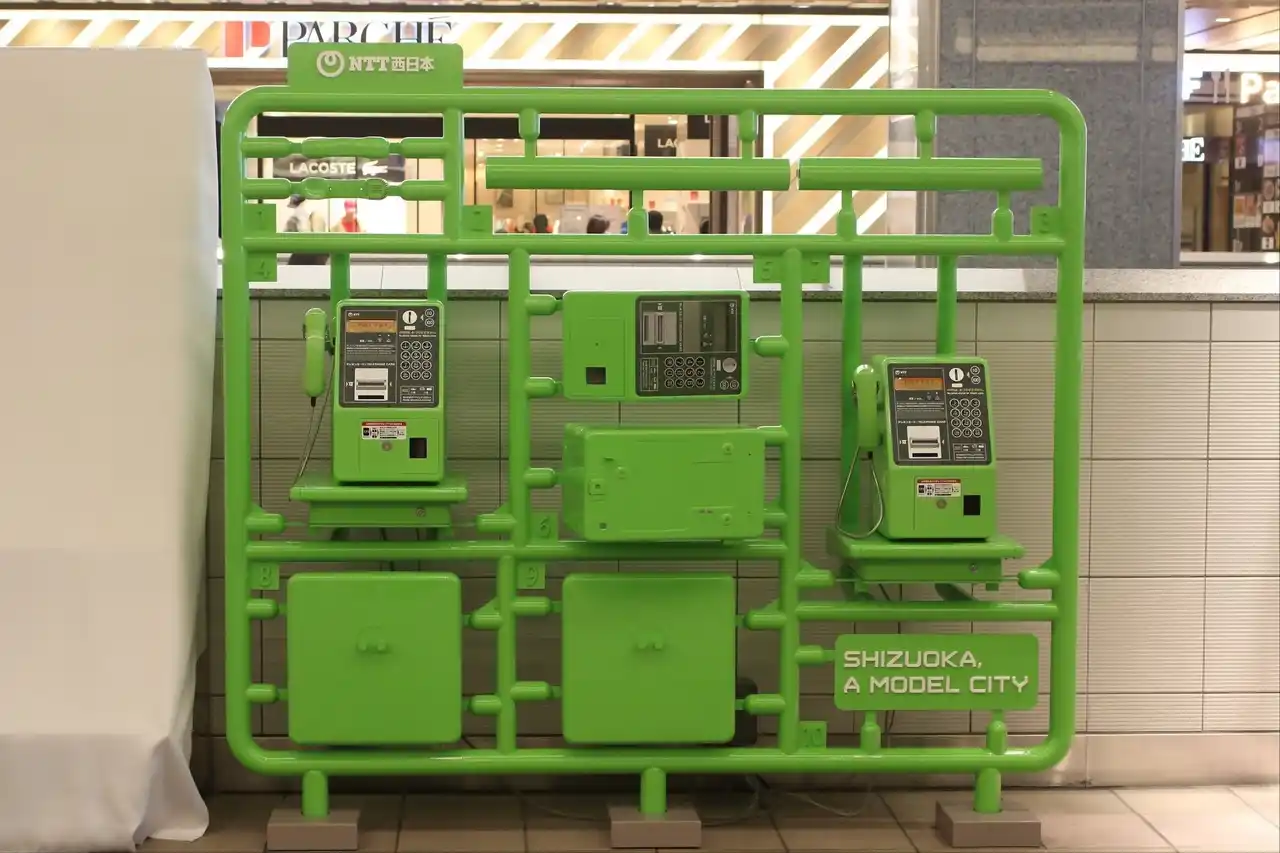 組立前のプラモデルをイメージして作られた「プラモニュメント」は、市内各所で皆様をお出迎えする工作物というだけでなく、自分自身があたかもプラモデルのパーツとして収まることができたり、プラモデルのパーツとなっているのが、実際に手紙・ハガキを投函できるポストだったり、実際に使用できる公衆電話だったりと「遊び心」いっぱいのモニュメントです。 |