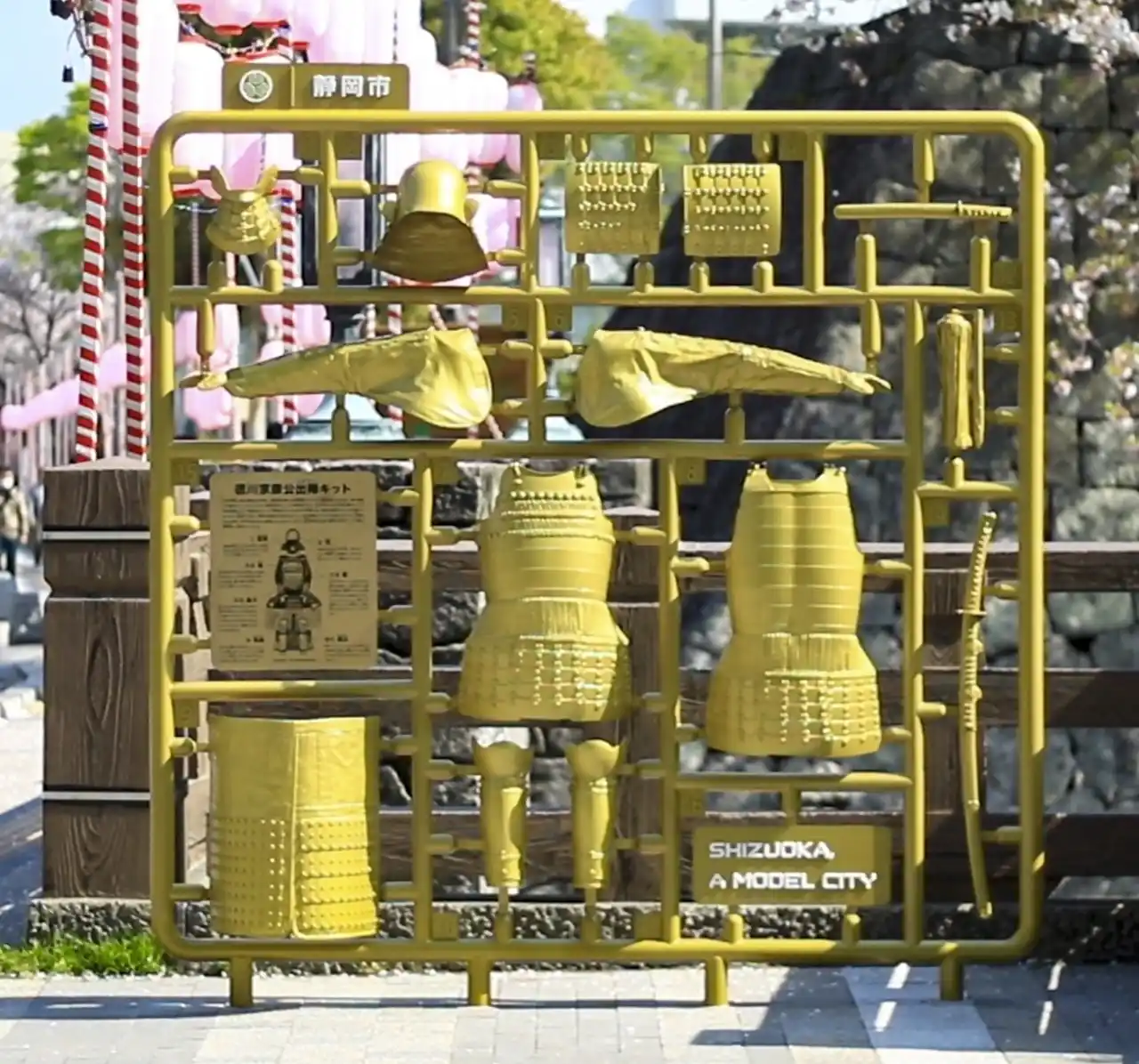 静岡市は、市の代表的な地場産品であるプラモデルを活用したシティプロモーションを推進するために「静岡市プラモデル化計画」を打ち出し、街の中にあるものを「組み立て前」のパーツに分解してプラモデルの特徴であるランナーにはめ込んだ「プラモニュメント」を、市内に設置するなど様々な取り組みを展開しています。 |